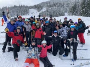 If you’re new to our trips, here’s what you can expect: we typically host 30–50 guests, ages 40 to 65+, with an average age around 52 and a balanced mix of men and women. Skiers and riders range from first-timers to advanced, so you’ll always find a group that matches your pace and make new friends easily.