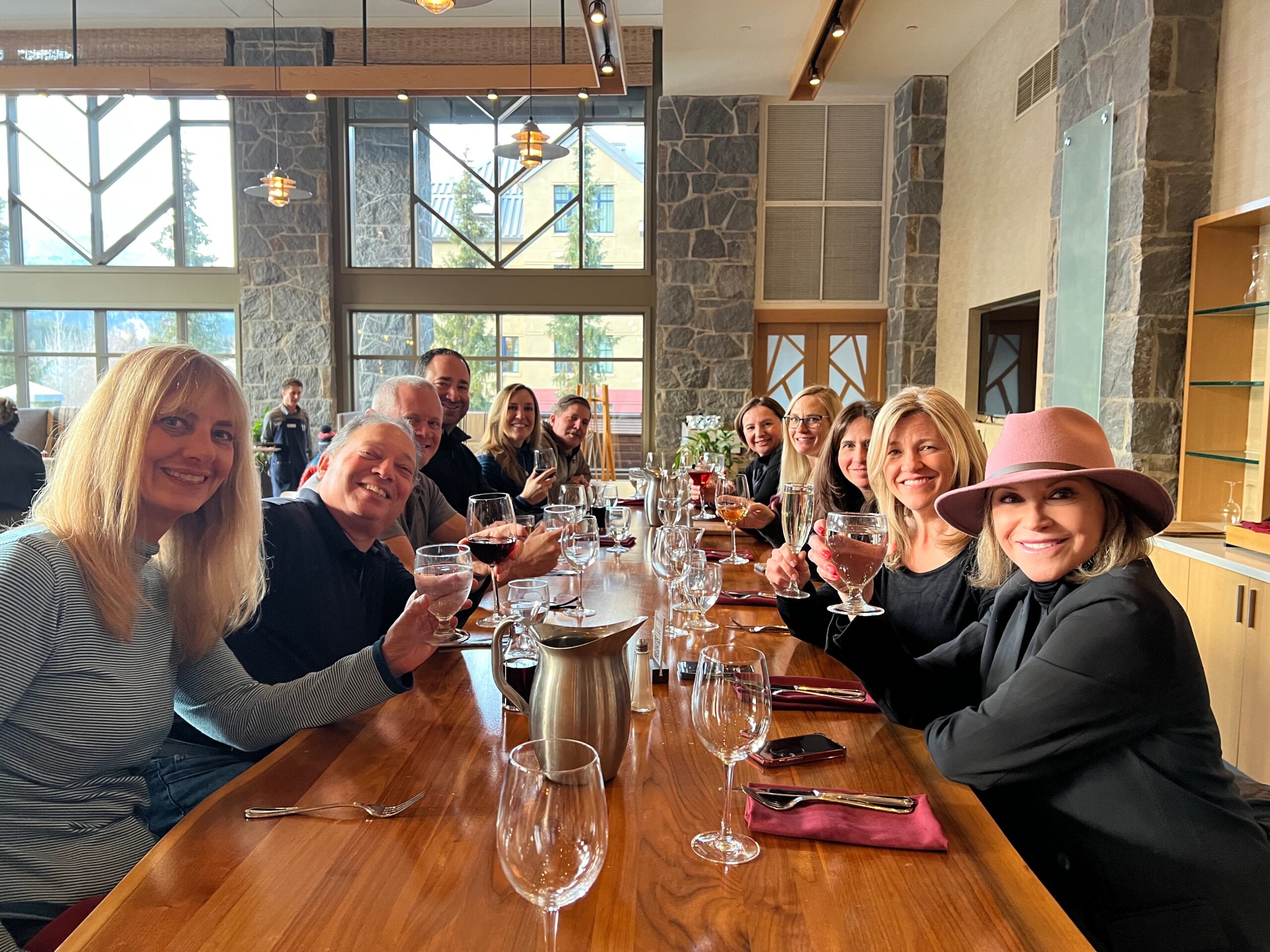 If you’re new to our trips, here’s what you can expect: we typically host 30–50 guests, ages 40 to 65+, with an average age around 52 and a balanced mix of men and women. Skiers and riders range from first-timers to advanced, so you’ll always find a group that matches your pace and make new friends easily.